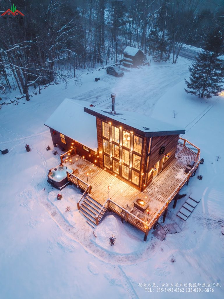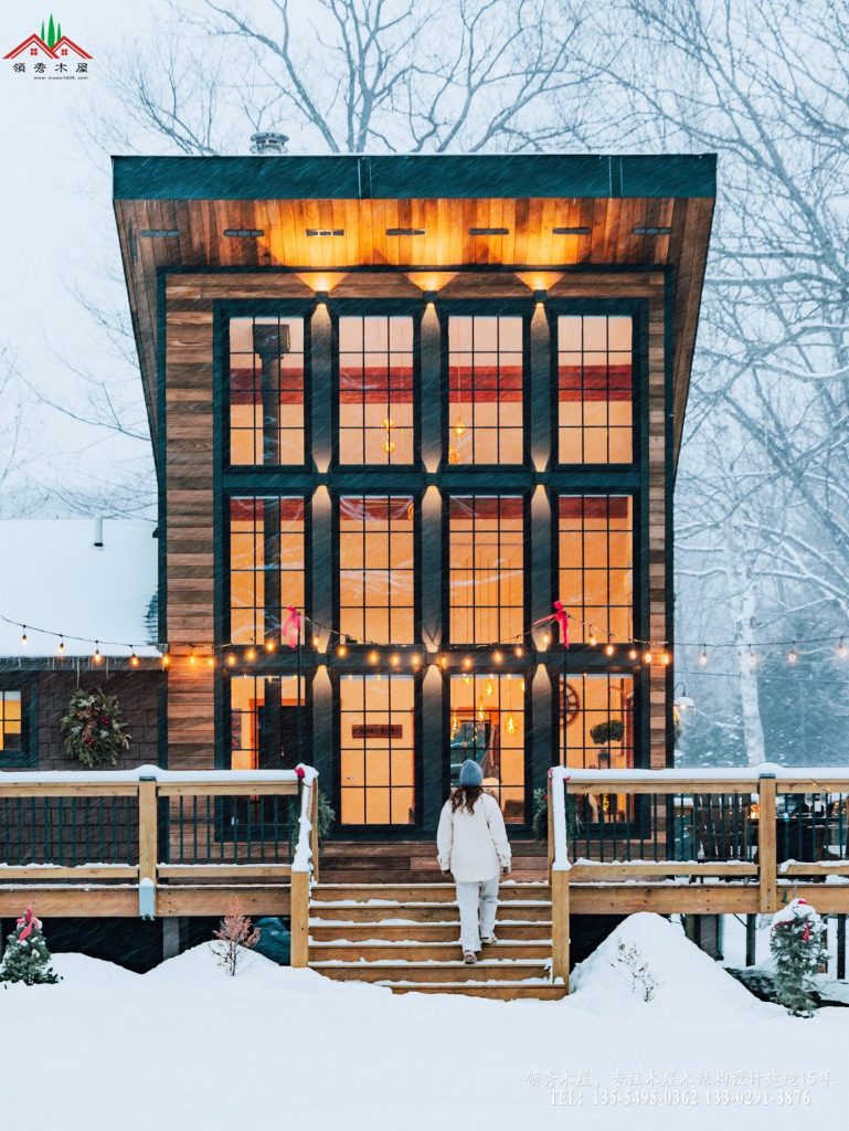 这是领秀木屋专为高端营地打造的一款单坡顶雪景木屋。